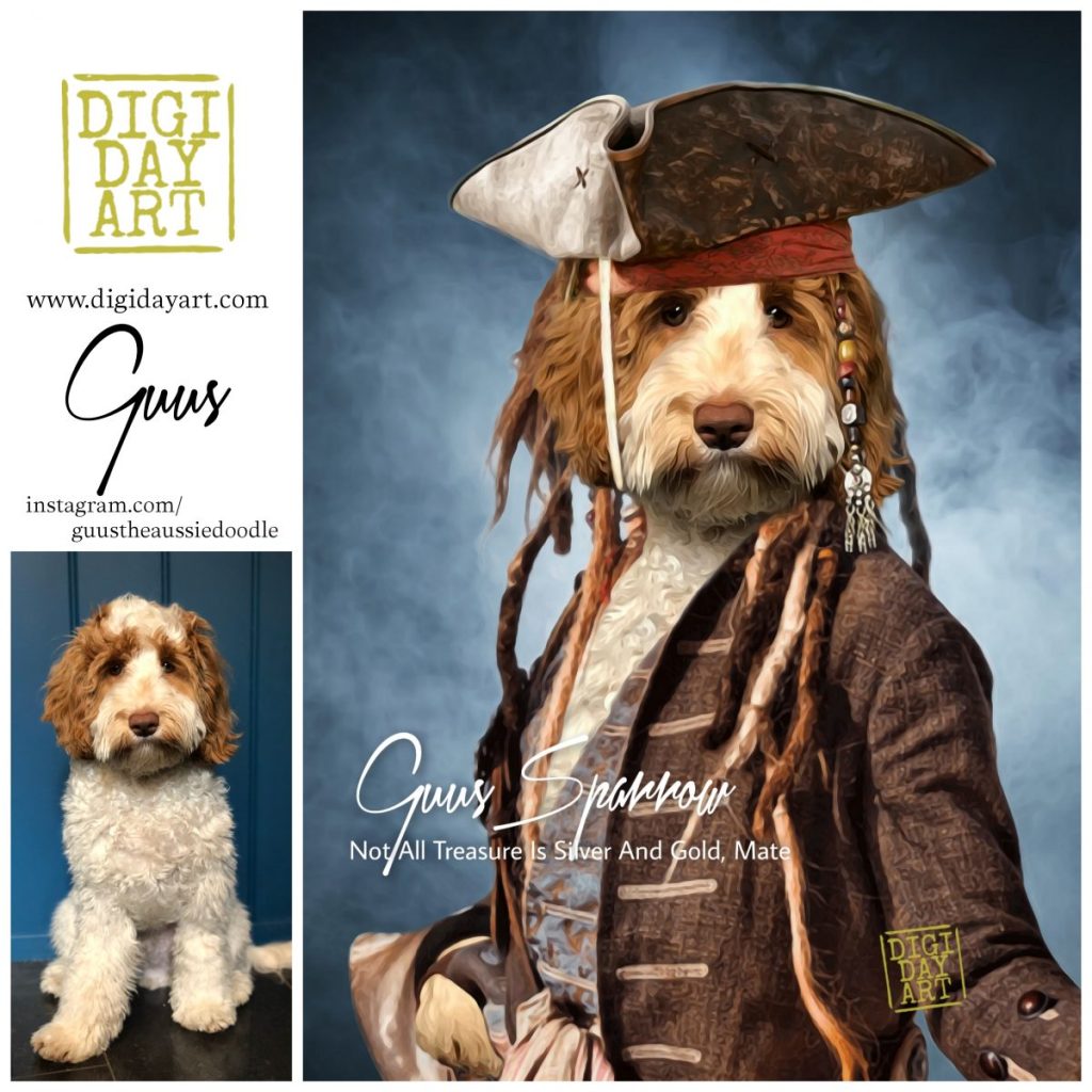Zeg roodhakje waar ga je heen? Ik ga naar Guus Sparrow een echte stoere piraat, hij heeft Roodkapje gevonden! En nu ga ik hem bedanken met een digitaal dressed-up portret van hem! Gaaf is die geworden hè.