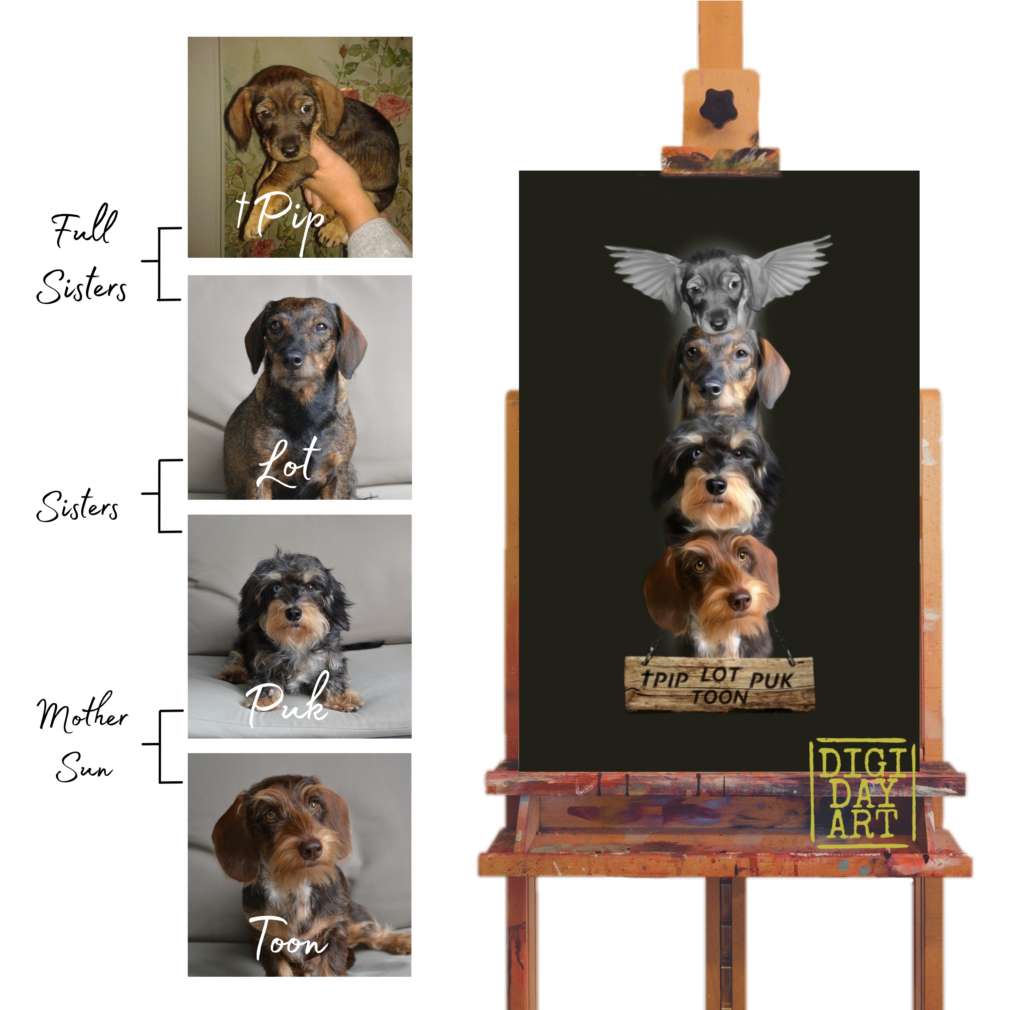 Voor deze teckel familie Totempaal mocht ik de foto’s van Toon, Lot, Puk en Pip gebruiken