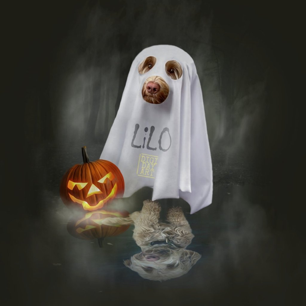 Of laat je huisdier vereeuwigen, dressed-up als bijvoorbeeld Dracula of als je van meer horror houd een bloederige slager. Hoe leuk als je lekker kan griezelen met deze aan je muur. Hang hem in de hal… mensen aan de deur voor “trick or treat” zullen het geweldig vinden