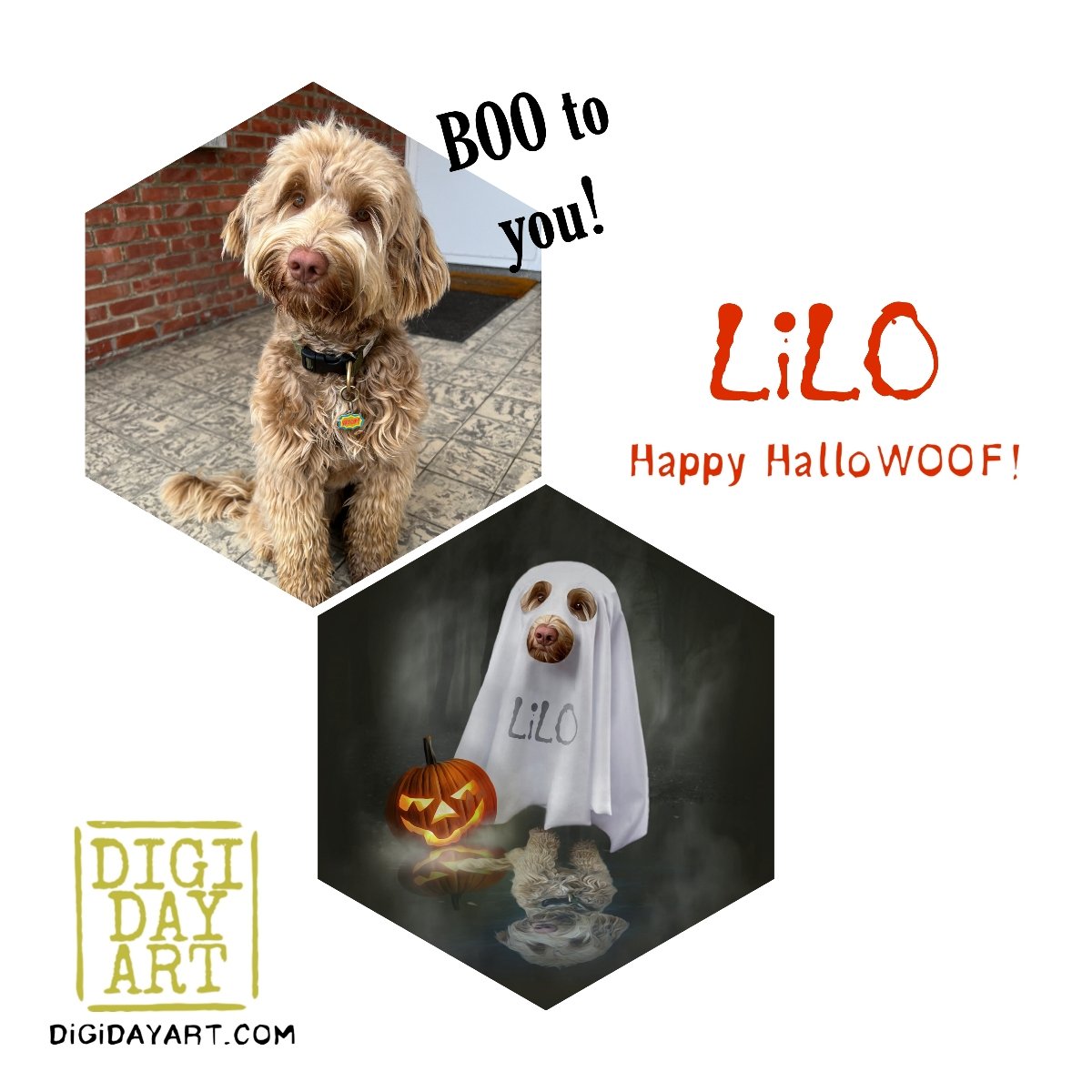 Of laat je huisdier vereeuwigen, dressed-up als bijvoorbeeld Dracula of als je van meer horror houd een bloederige slager. Hoe leuk als je lekker kan griezelen met deze aan je muur. Hang hem in de hal… mensen aan de deur voor “trick or treat” zullen het geweldig vinden