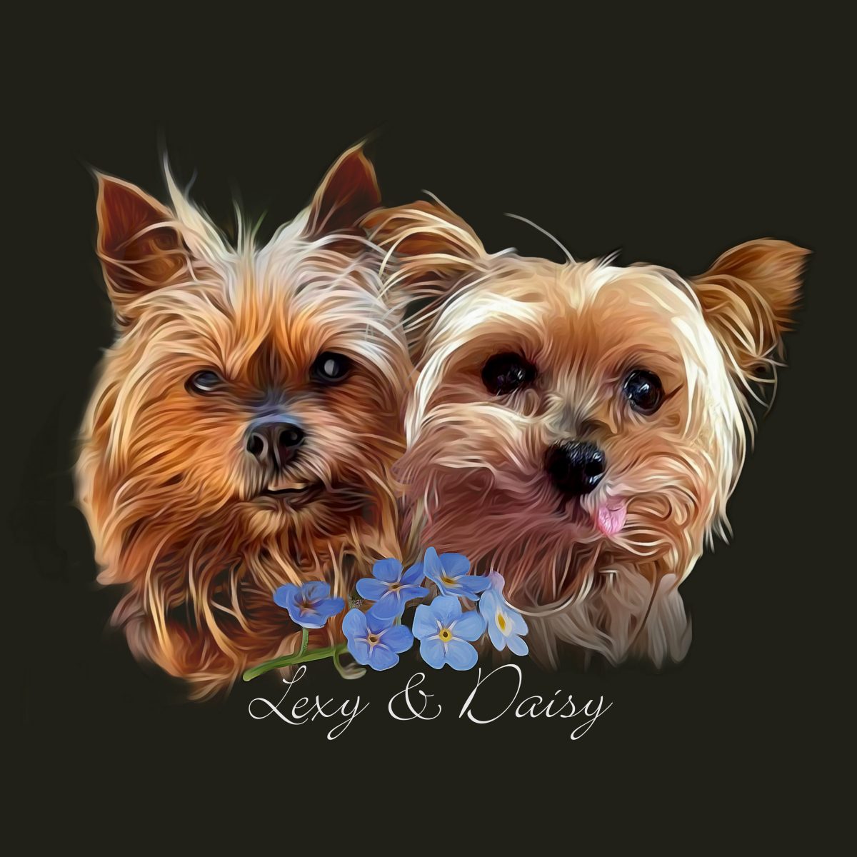 Moeder en dochter. Moeder Lexy is †27 mei 2020 overleden ze is 15,5 jaar geworden. Bijna een jaar later †17 mei 2021 is dochter Daisy overleden ze is 14,5 jaar geworden. Ik heb hun portretten samen gevoegd zodat ze weer lekker samen zijn!