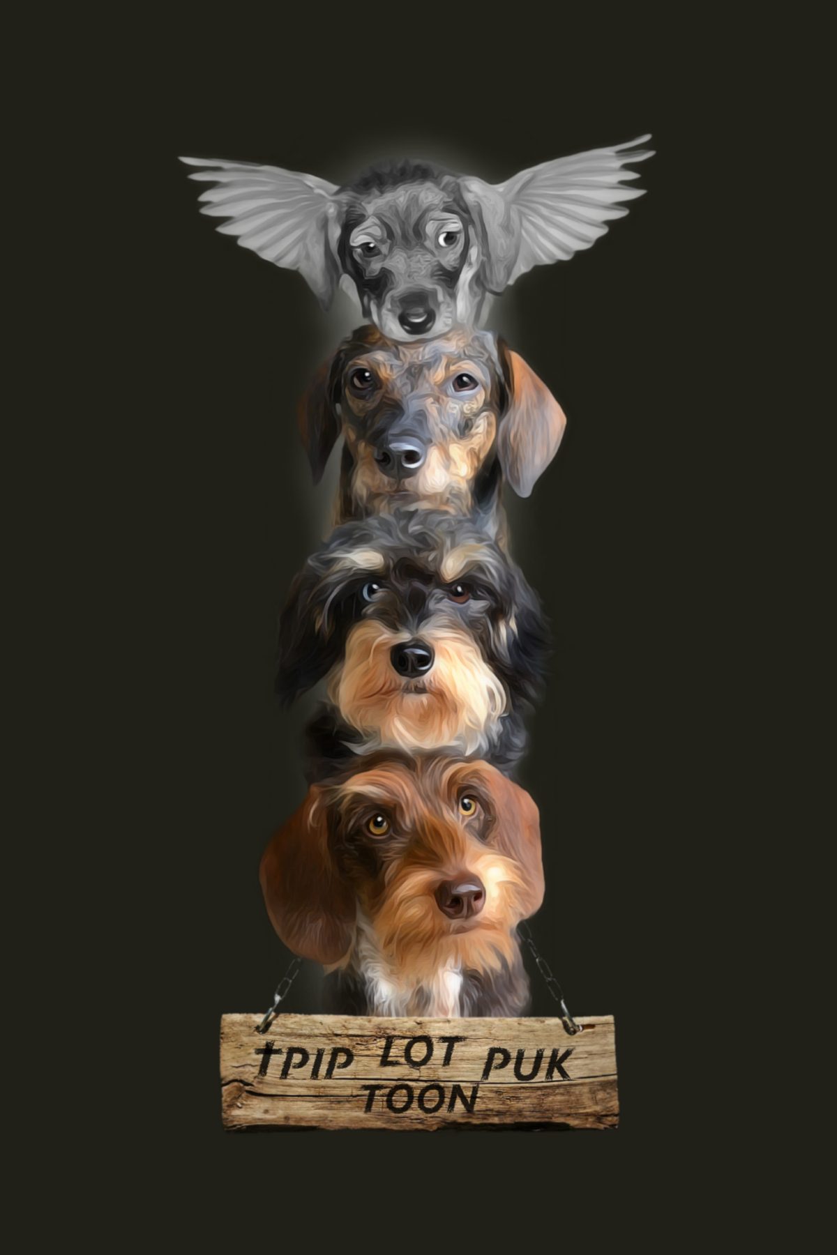 Digidayart Totempaal portret Pip Lot Puk en Toon