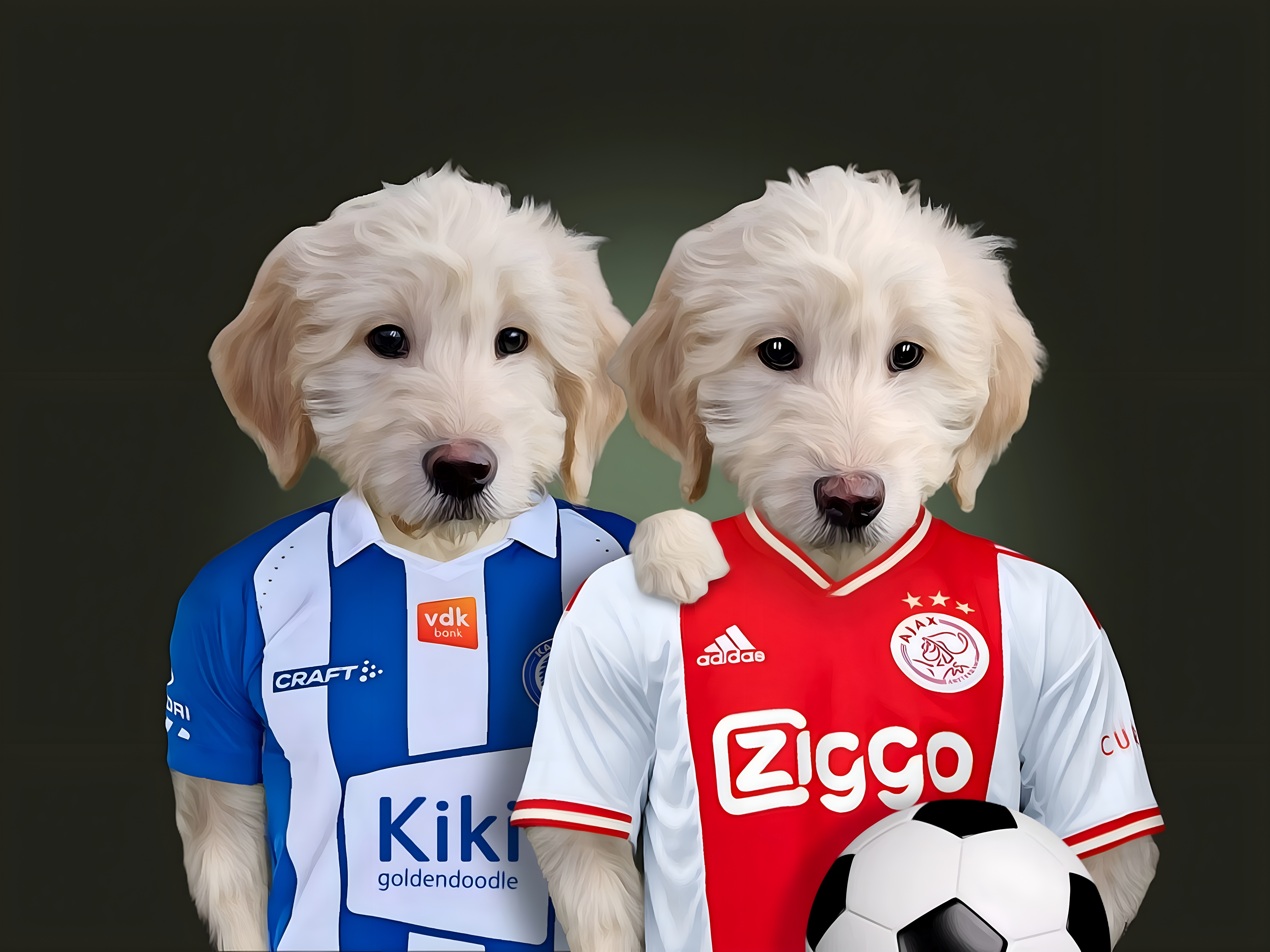Vorige afbeelding Volgende afbeelding Kiki dubbel fanportret KAA Gent-Ajax ’22-’23 Fan van meerdere clubs?… geen probleem Fan van meerdere clubs?… geen probleem